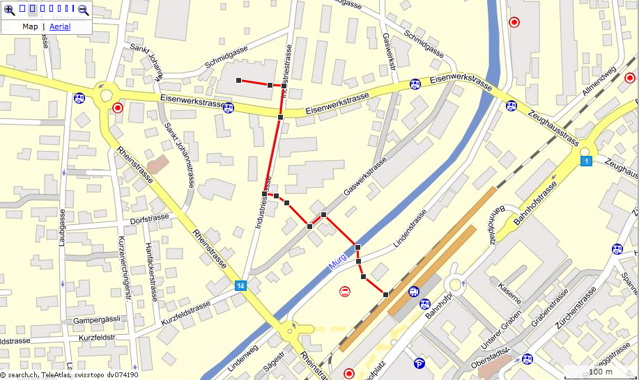 Die Aufstellungstage finden im Atelier von Ursula im Eisenwerk statt. Die offizielle Adresse ist Industriestrasse 21, sie finden das mit Google auch direkt mit den Stichworten "Eisenwerk Frauenfeld" oder mit unserem Ausschnitt aus dem Stadtplan von Frauenfeld. Wir haben den Fussweg, der von der Fussgängerunterführung im Bahnhof zur Lindenstrasse und von dort über eine Fussgängerbrücke zur Gaswerkstrasse und weiter zur Industriestrasse führt, rot eingezeichnet. So sind es nur etwa 6 Minuten zu Fuss vom Bahnhof zum Atelier von Ursula. Link zu GoogleMaps
